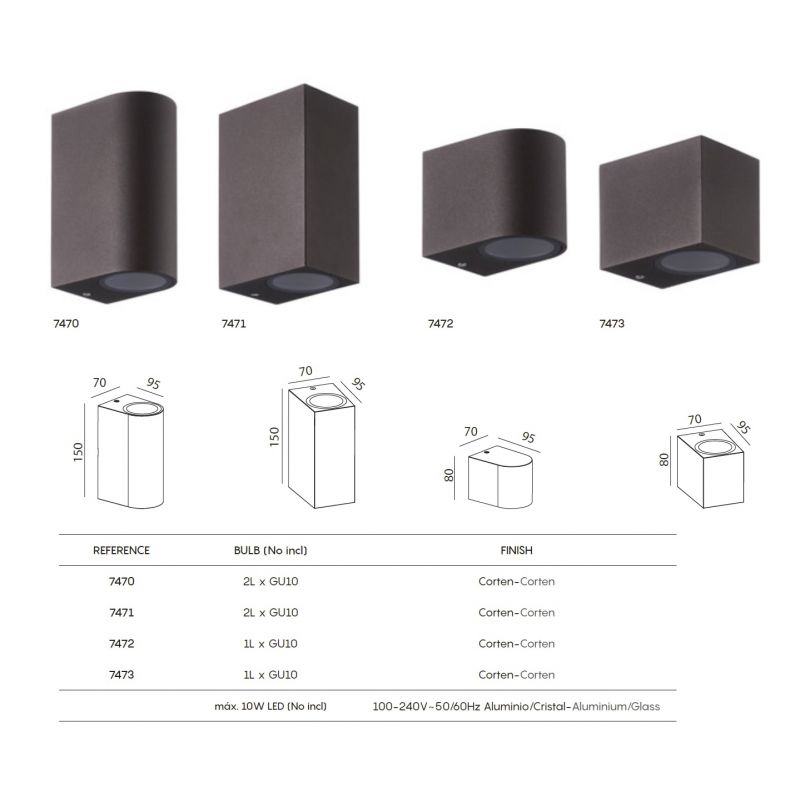 Putere | 2x 10Watt GU10, bec LED exclus din pret |