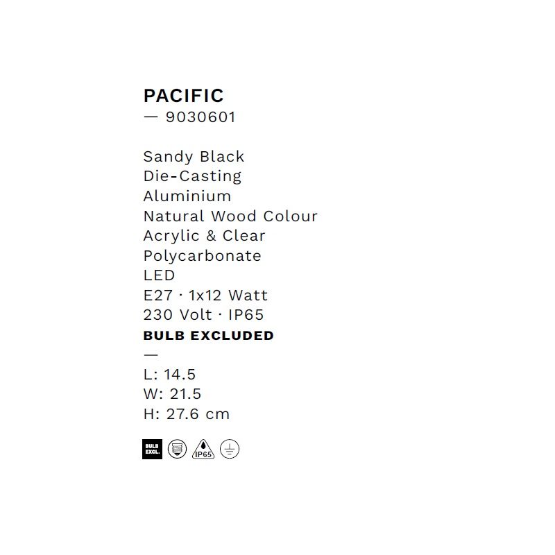 | Materiale | aluminiu finisaj negru, acrilic culoarea lemn natural, policarbonat |