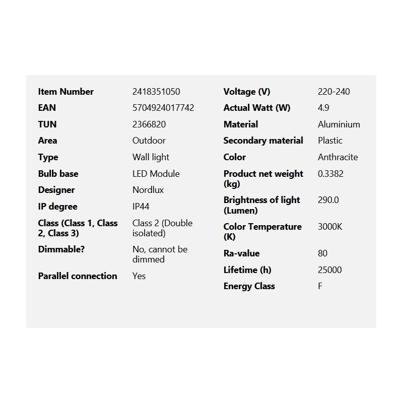 Informatii produs: | lampa de exterior cu protectie la umiditate IP44 |