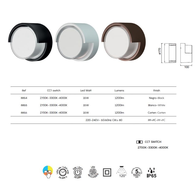 Putere | 15W LED 2700K 1200lm, 2700K-3300K-4000K CCT switch |