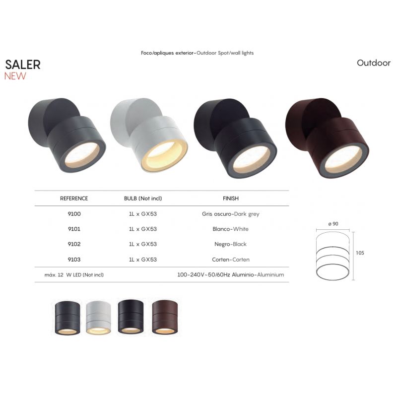 Aplica exterior cu spot GX53 directionabil IP65 SALER gri inchis