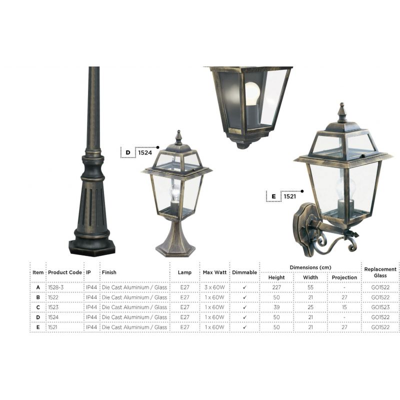 Aplica de perete pentru iluminat exterior stil clasic traditional, lampa este ideală pentru iluminarea zonelor de trecere din curte, terasa și gradina, fiind un corp de iluminat cu protectie la umiditate de IP44.