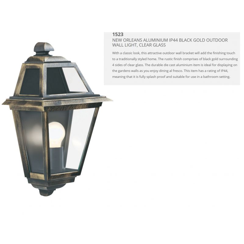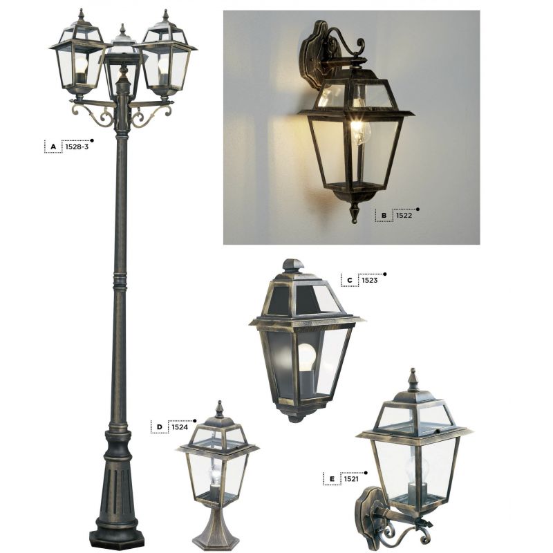 Aplica de perete pentru iluminat exterior stil clasic traditional, lampa este ideală pentru iluminarea zonelor de trecere din curte, terasa și gradina, fiind un corp de iluminat cu protectie la umiditate de IP44.