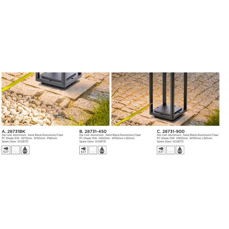 | Descriere | aluminiu turnat finisaj negru nisip, abajur policarbonat clar |