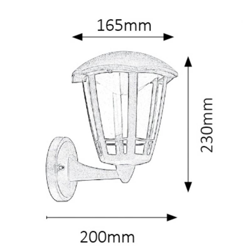 Aplica pentru iluminat exterior, lampa este potrivita pentru iluminatul zonelor de intrare casa, terasa și cele de trecere din aer liber.