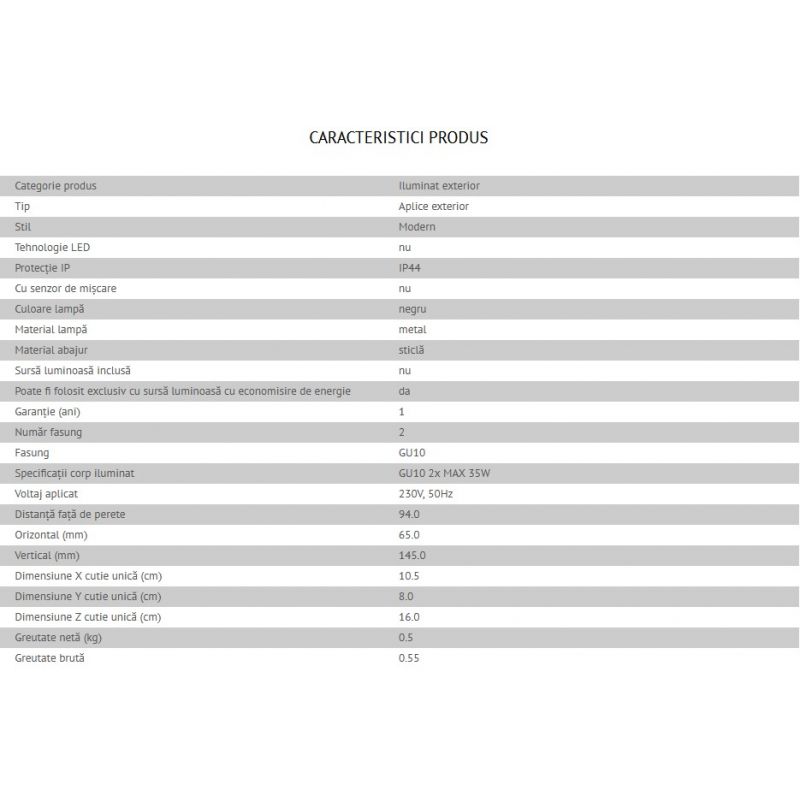 Aplica pentru iluminat exterior, lampa este potrivita pentru iluminatul zonelor de intrare casa, terasa și cele de trecere din aer liber.