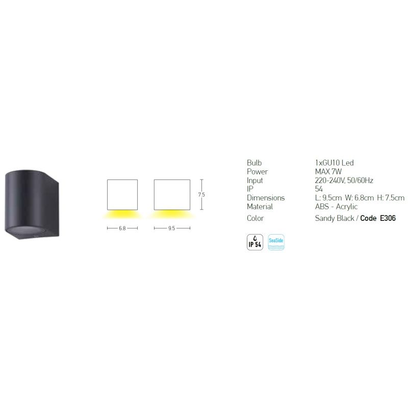 Putere | 1x7Watt bec GU10 LED, exclus din pret |