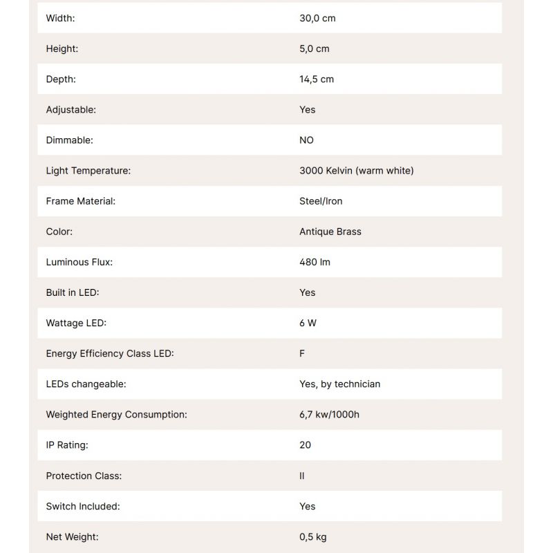 | Putere | 6Watt LED 480Lm, 3000K, inclus in pret |