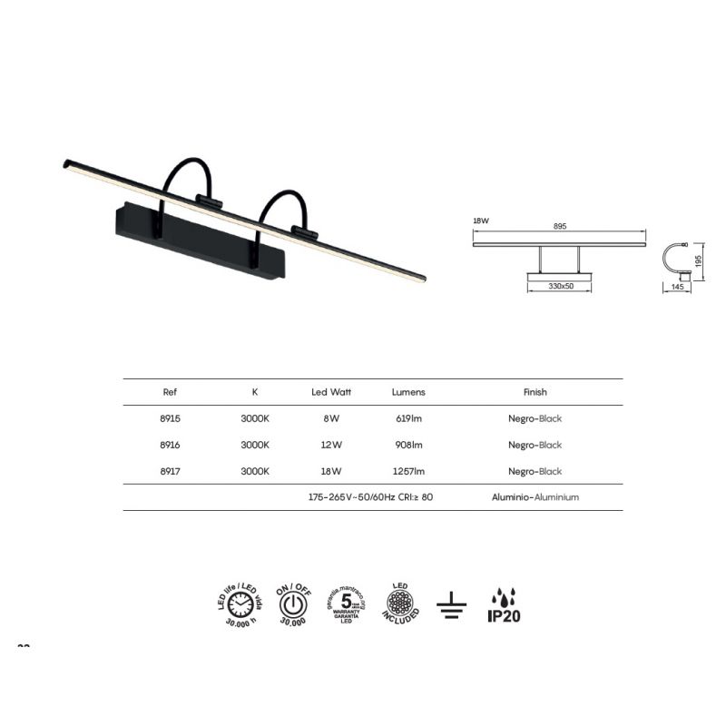 | Putere | 18Watt LED integrat 1257Lm, 3000K |