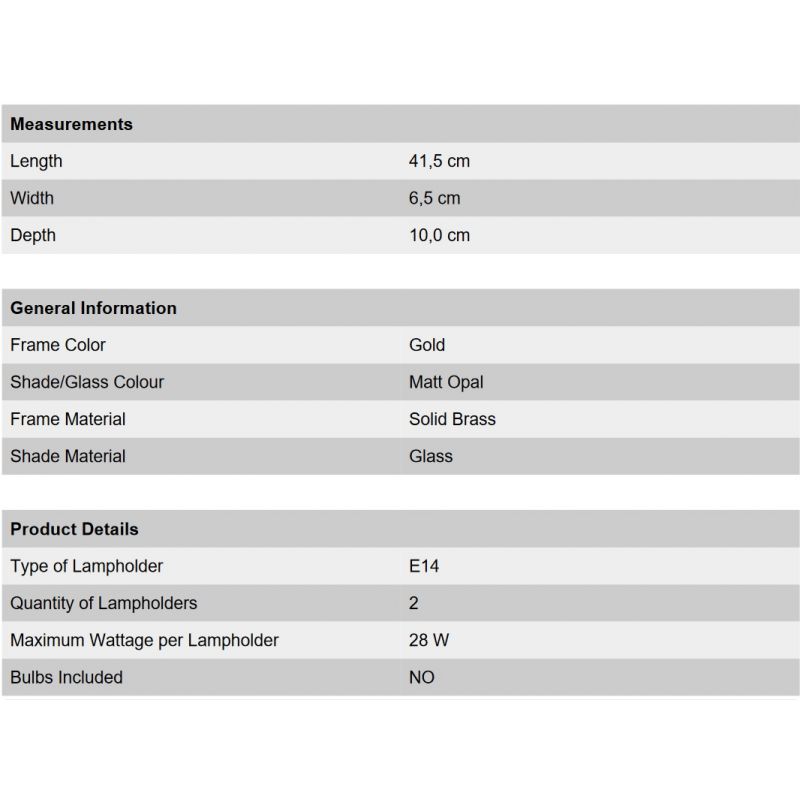 | Descriere | cadru din alama solida placata cu aur de 24K, abajur de sticla opal mat |