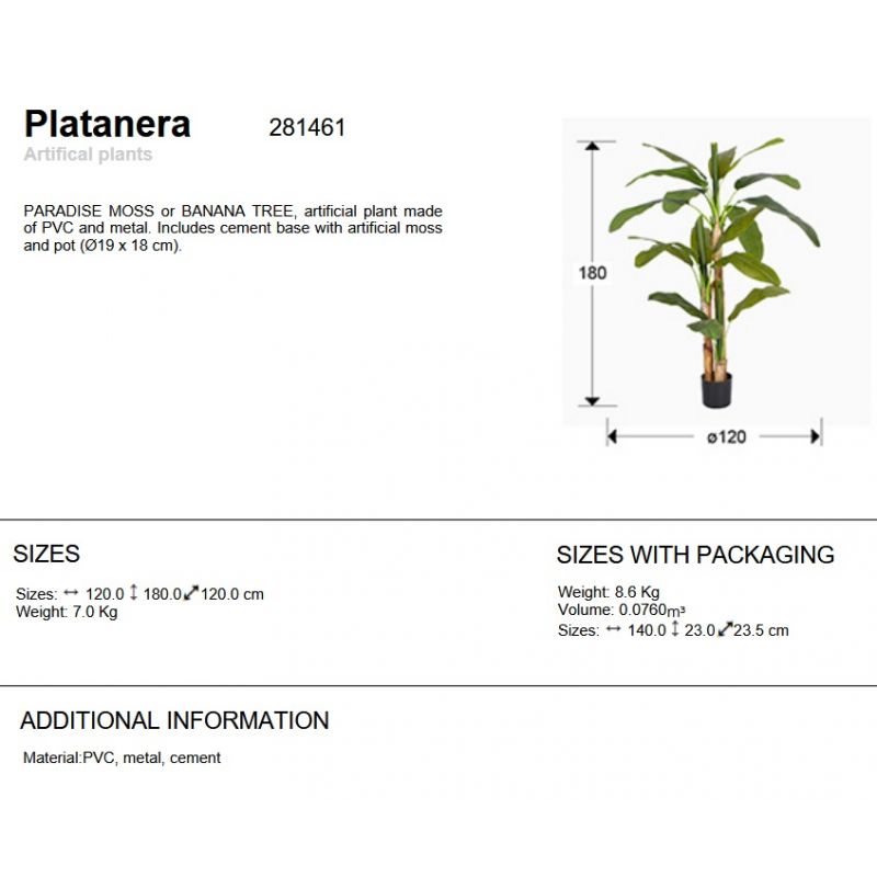| Materiale | planta artificiala din metal si PVC, baza din ciment cu moss artificial, ghiveci diametru 19cm |