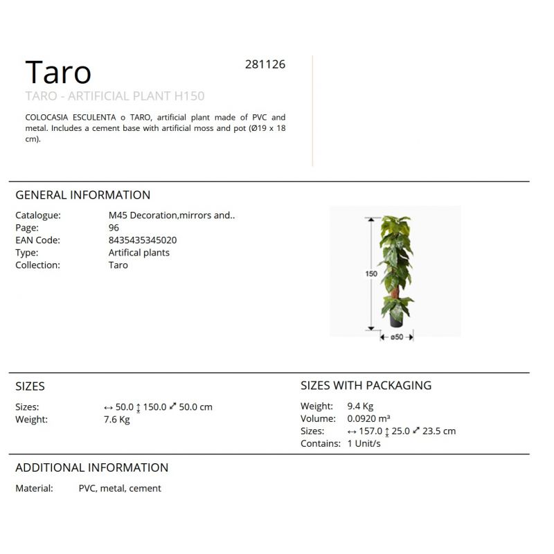 | Materiale | planta artificiala din metal si PVC, baza din ciment cu moss artificial, ghiveci diametru 19cm |