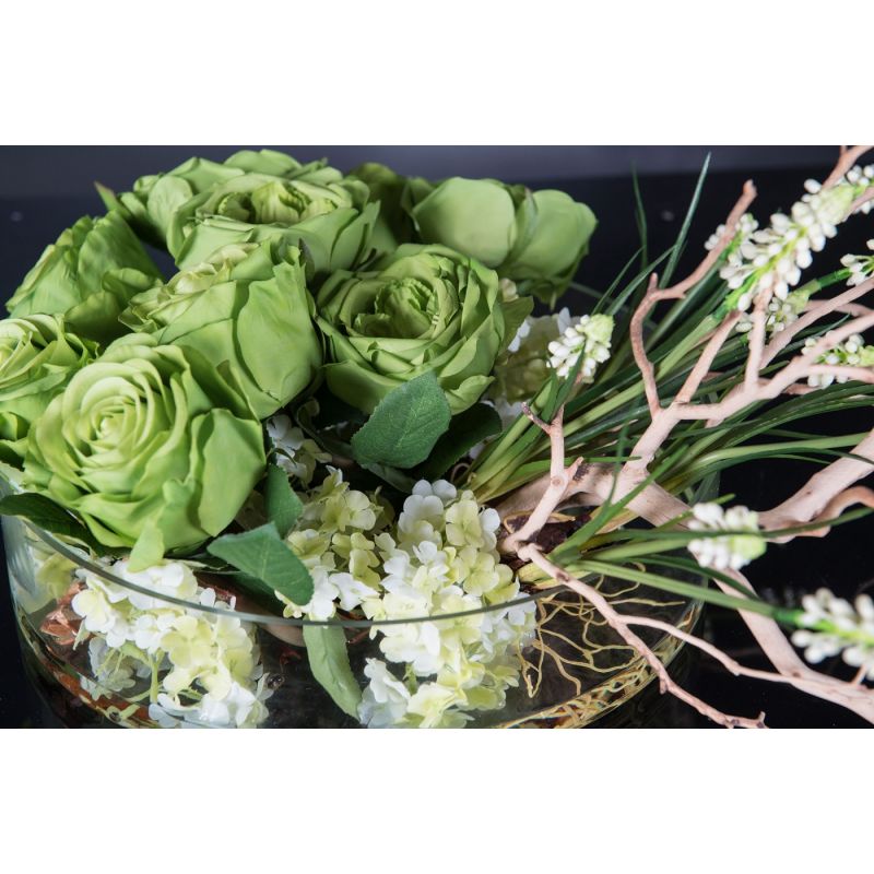 | Materiale | vas din sticla transparenta, flori artificiale, apa acrilica - "water illusion" efect |