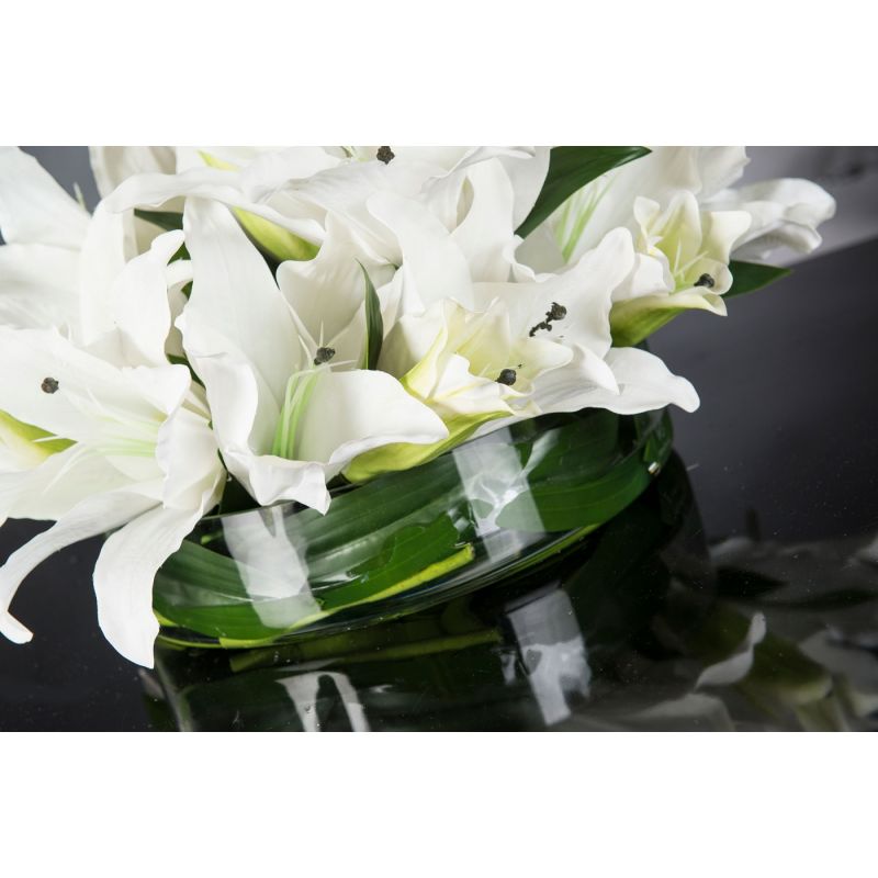 | Descriere | vas din sticla transparenta, aranjament floral artificial, apa acrilica - "water illusion" efect |