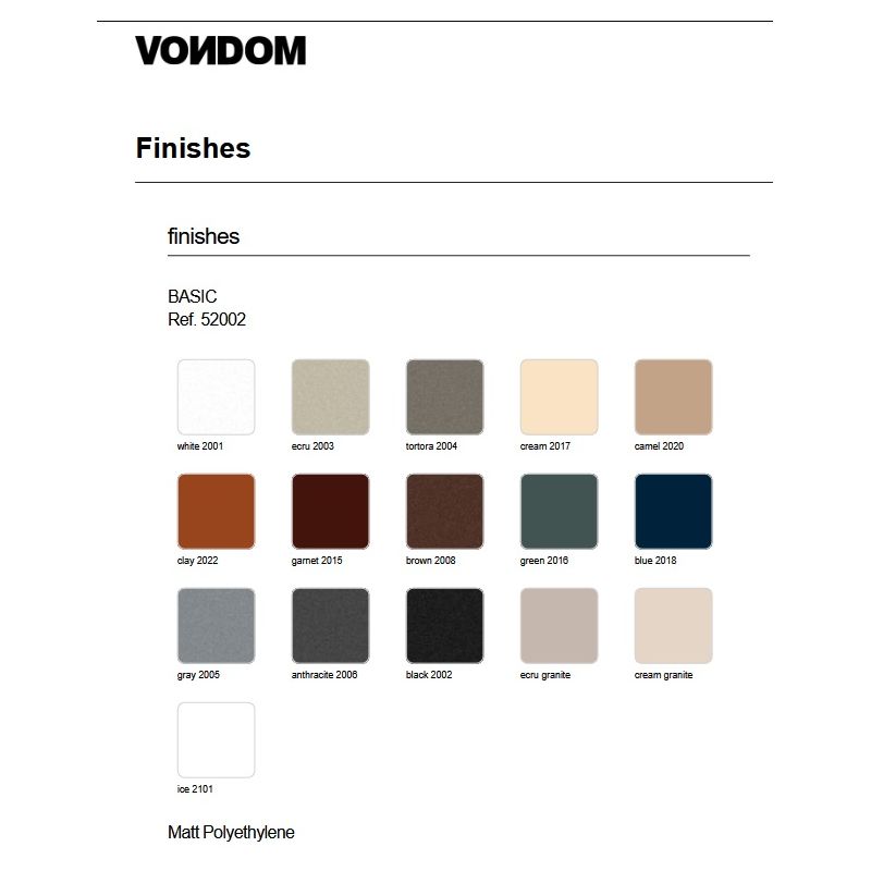 Parteneriate cu designeri internaționali – VONDOM colaborează cu arhitecți și designeri renumiți, precum Stefano Giovannoni, Ludovica + Roberto Palomba, Javier Mariscal, Karim Rashid, A-cero și Ramón Esteve, oferind piese care îmbină estetica contemporană cu funcționalitatea.