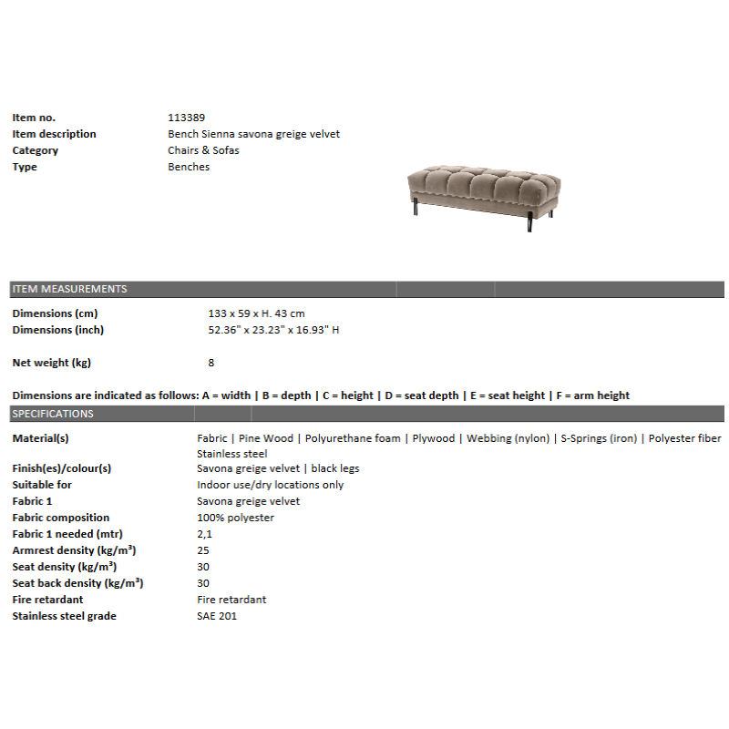 | Descriere | tapiterie din tesatura cu efect de catifea-100% poliester greige (o nuanta intre bej si gri), lemn de pin, umplutura spuma si fibre de poliester, placaj, arcuri, picioare din otel finisaj negru |