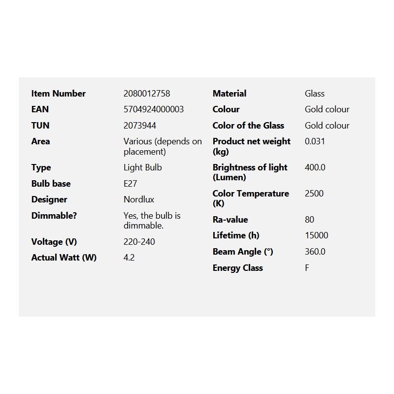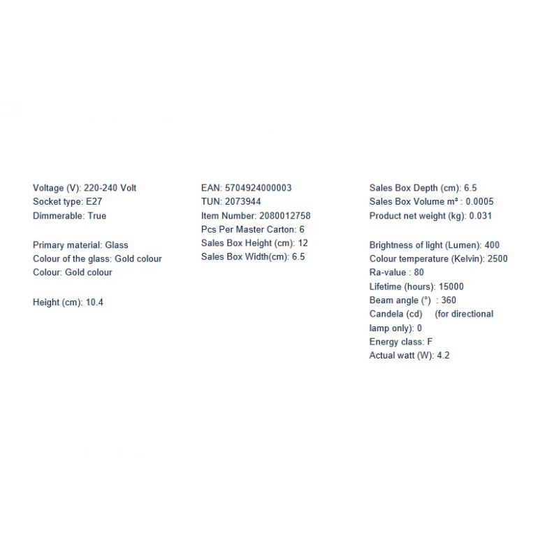 Putere | 4,2 Watt LED dimabil 400Lm,2500K |