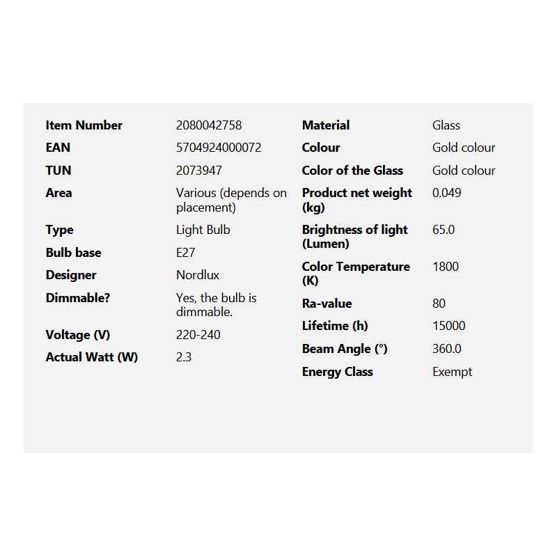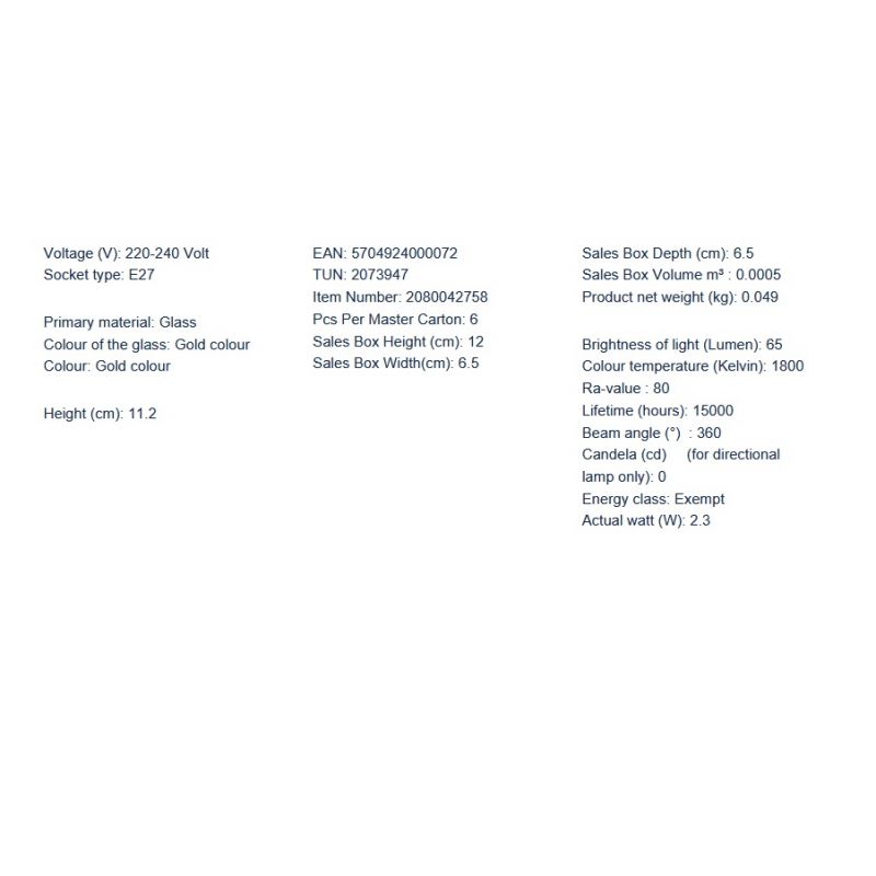 Putere | 2,3 Watt LED dimabil 65Lm, 1800K |