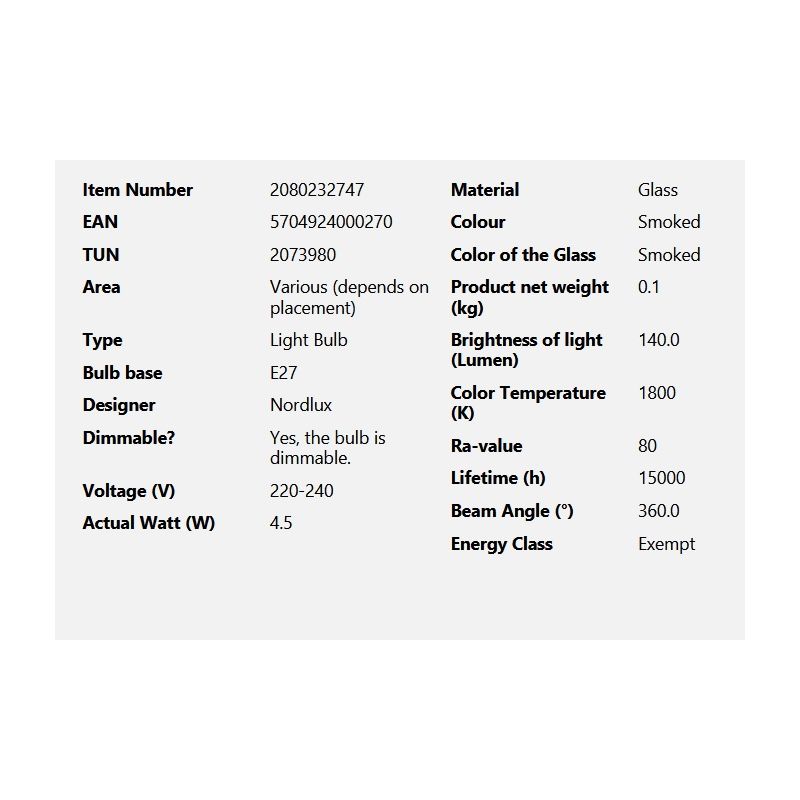 Putere | 4,9 Watt LED dimabil 140Lm, 1800K |