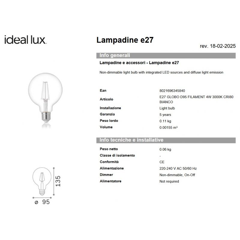 | Putere | 4Watt LED dimabil, 550Lm, 3000K (becul nu este dimmabl) |