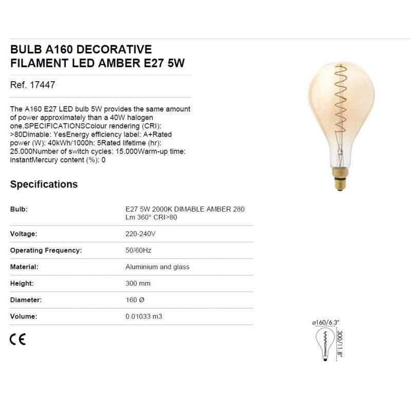 | Putere | E27 5W 2000K 280lm 360° dimabil |