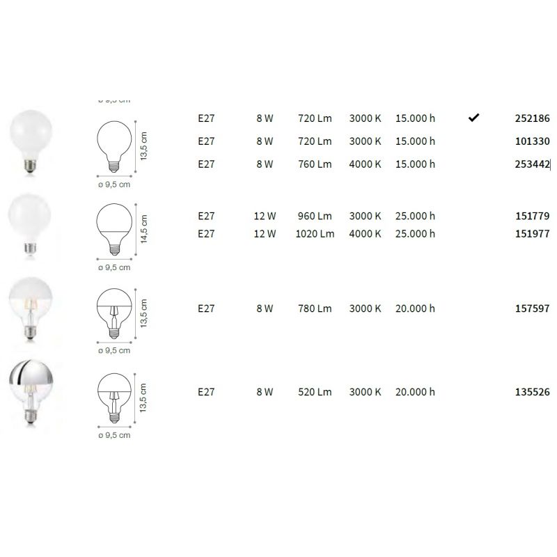 Bec LED E27 08W GLOBO D095 BIANCO 4000K