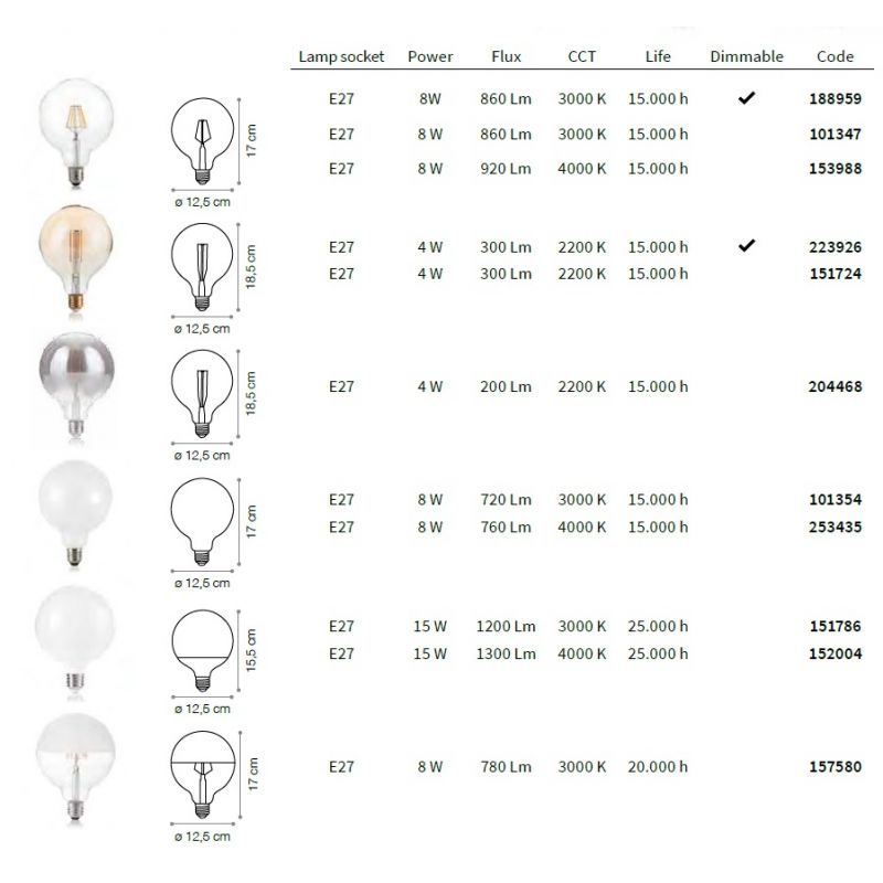 Bec LED E27 08W GLOBO D125 BIANCO 4000K