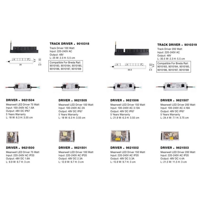 | Informatii produs: | Acest driver transformă tensiunea de rețea de 220–240V AC într-o tensiune continuă stabilă de 48V DC, necesară pentru funcționarea corpurilor LED compatibile montate pe șină. |