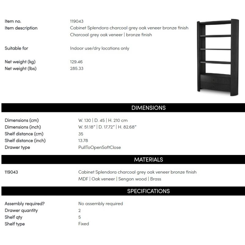 | Materiale | furnir de stejar, MDF, lemn sengon, alama finisaj bronz |
