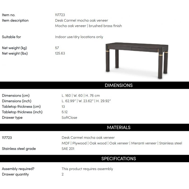 | Materiale | MDF, furnir de stejar, furnir de meranti, detalii din otel inoxidabil finisaj alama periata |