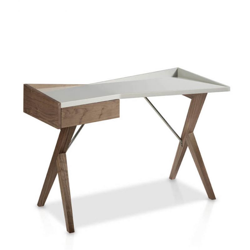 Biroul elegant design modern Lory este o piesă de mobilier care combină în mod unic doua materiale diferite. Proiectat într-un aspect trendy în două culori, suprafețele lăcuite din MDF sunt aliate cu furnir de stejar.