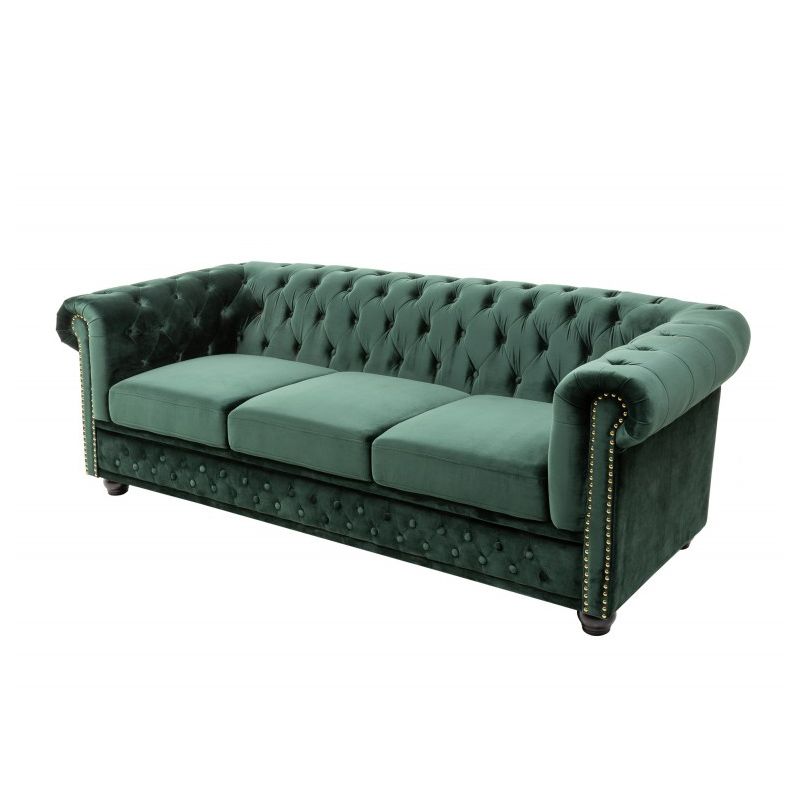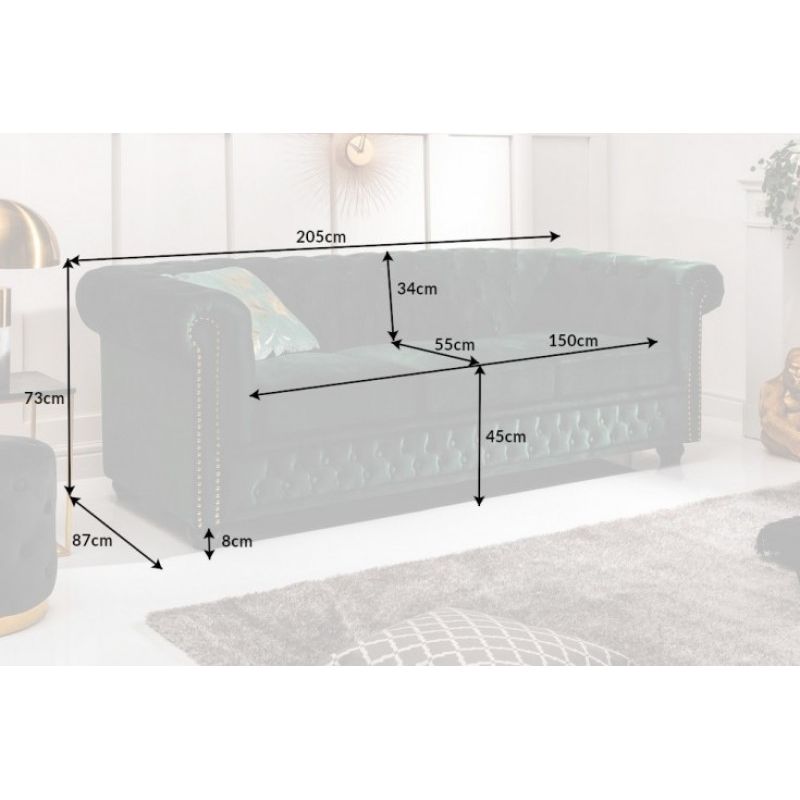| Materiale | cadru din lemn, tapiterie din catifea (100% poliester), butoni decorativi, pioneze aurii, picioare maro |