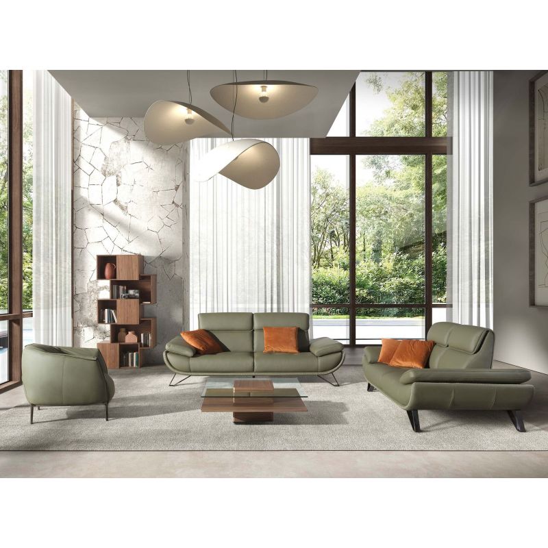 | Materiale | otel inoxidabil nuanta inchisa, piele naturala verde masliniu, structura din lemn de pin |