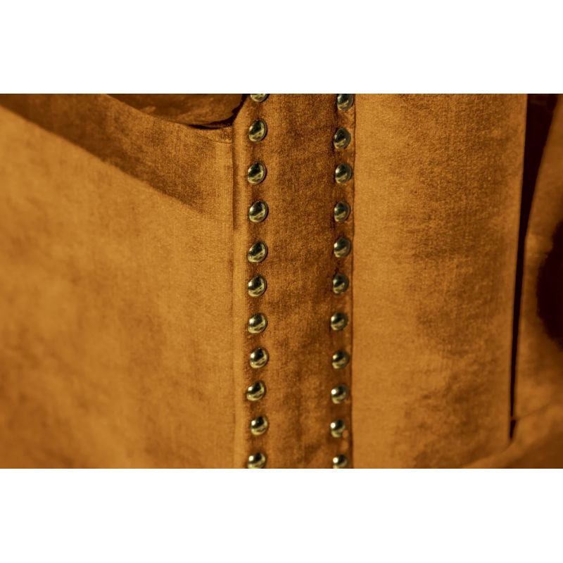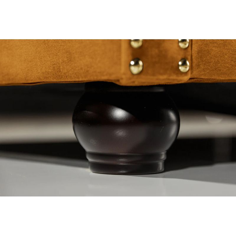| Materiale | cadru din lemn, tapiterie din catifea (100% poliester), butoni decorativi, picioare maro |