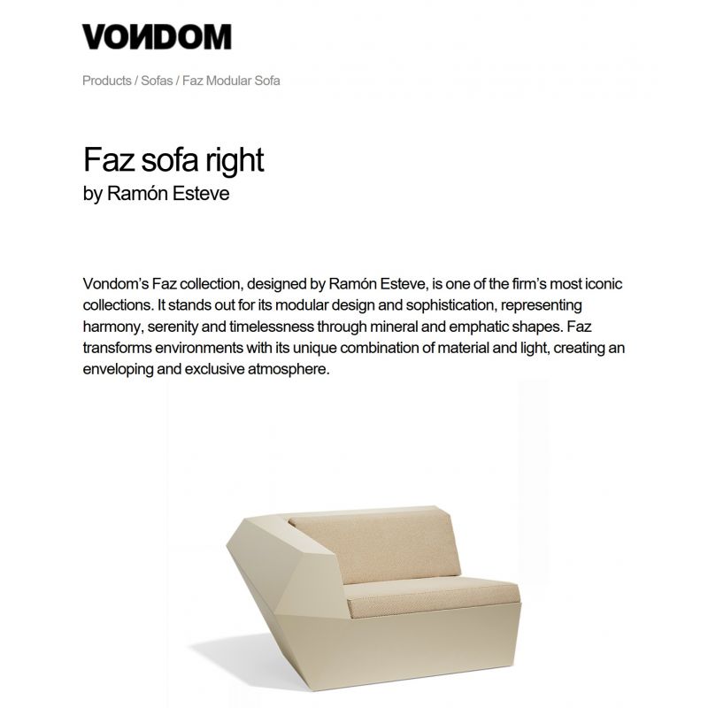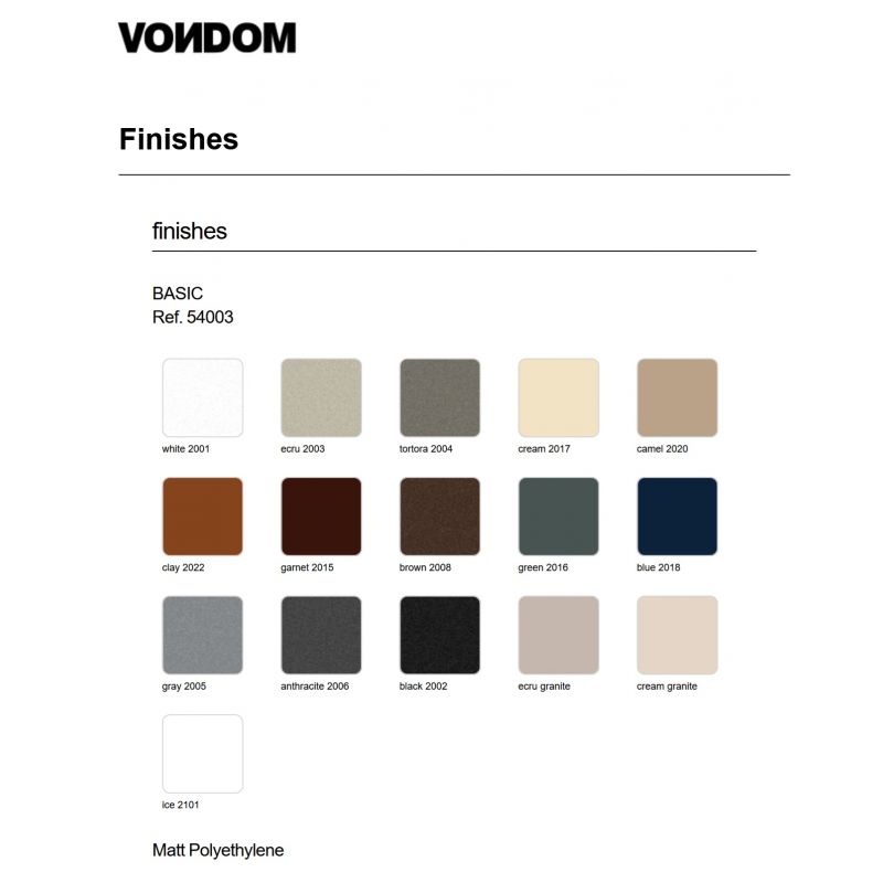 Parteneriate cu designeri internaționali – VONDOM colaborează cu arhitecți și designeri renumiți, precum Stefano Giovannoni, Ludovica + Roberto Palomba, Javier Mariscal, Karim Rashid, A-cero și Ramón Esteve, oferind piese care îmbină estetica contemporană cu funcționalitatea.