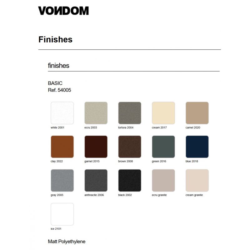 Parteneriate cu designeri internaționali – VONDOM colaborează cu arhitecți și designeri renumiți, precum Stefano Giovannoni, Ludovica + Roberto Palomba, Javier Mariscal, Karim Rashid, A-cero și Ramón Esteve, oferind piese care îmbină estetica contemporană cu funcționalitatea.