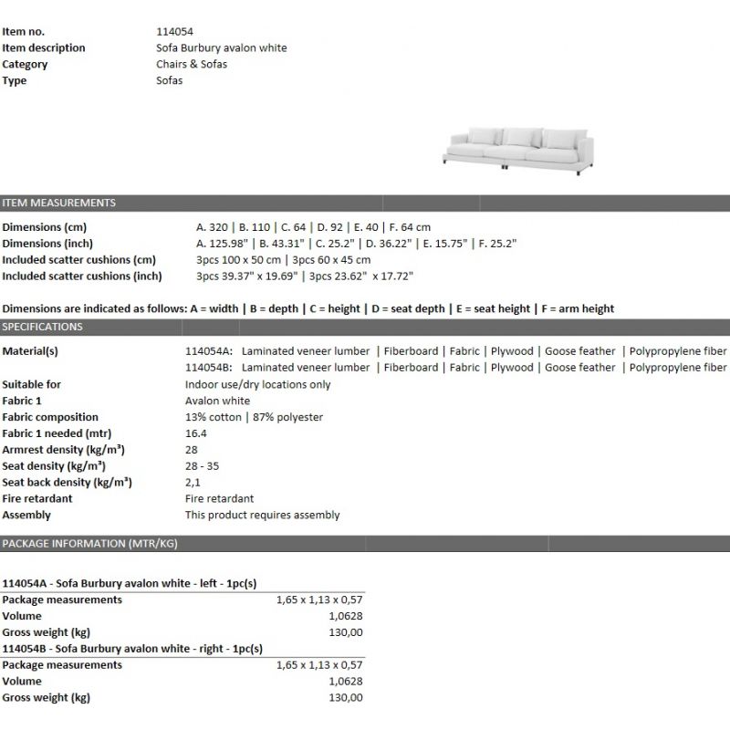 | Dimensiuni | latime:320cm; adancime:110cm; inaltime:64cm; adancime sezut:92cm; inaltime sezut:40cm |