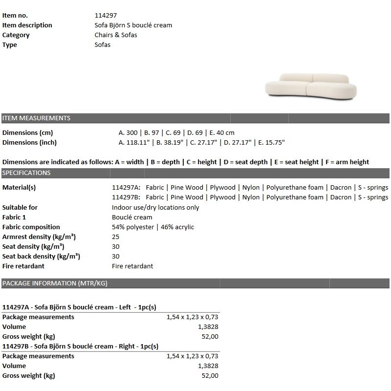 | Descriere | Tesatura, lemn de pin, placaj, umplutura spuma poliuretanica |