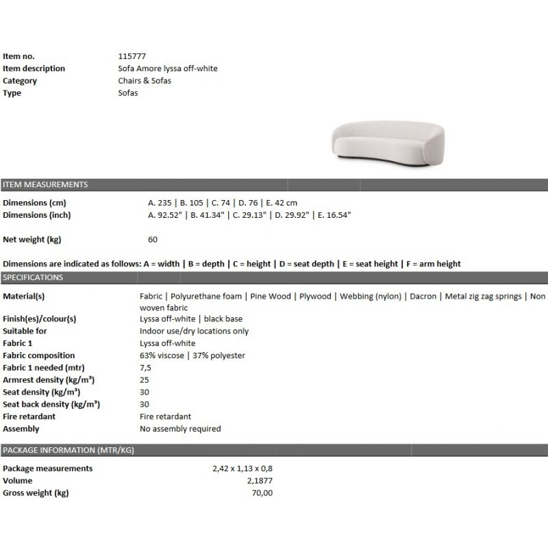 Canapeaua confortabilă Amore vine cu un design chic si elegant cu o tapiterie lyssa off-white. Amore este perfecta pentru dressing, camera de zi, cafenea sau magazin. Aceasta canapea va adauga cu siguranta o nota de lux si eleganta.