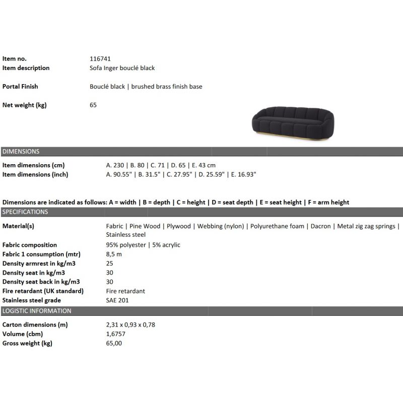 | Descriere | tesatura tesatura boucle crem 95% poliester/ 5% acril, lemn de pin, placaj, baza din otel finisaj alama periata, arcuri, umplutura spuma |