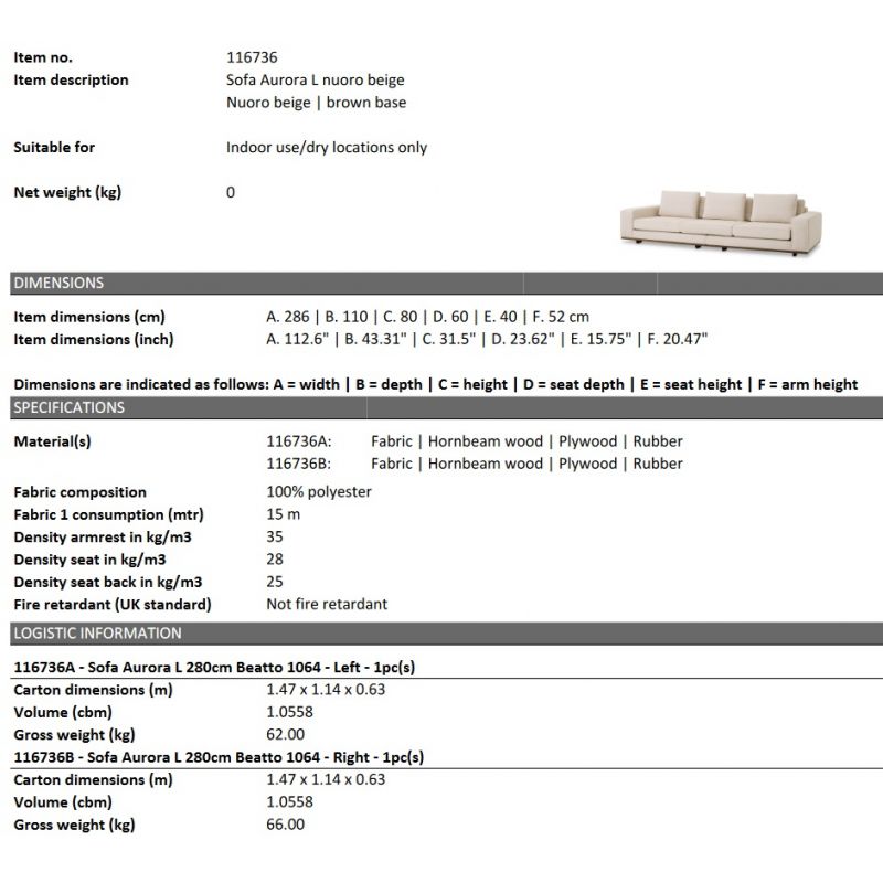 | Dimensiuni | lungime:286cm; adancime:110cm; inaltime:80cm; inaltime sezut:40cm |