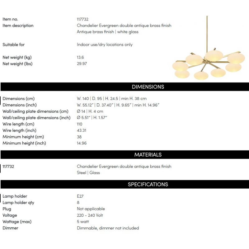 | Putere | 8x5 Watt E27 bec exclus din pret |