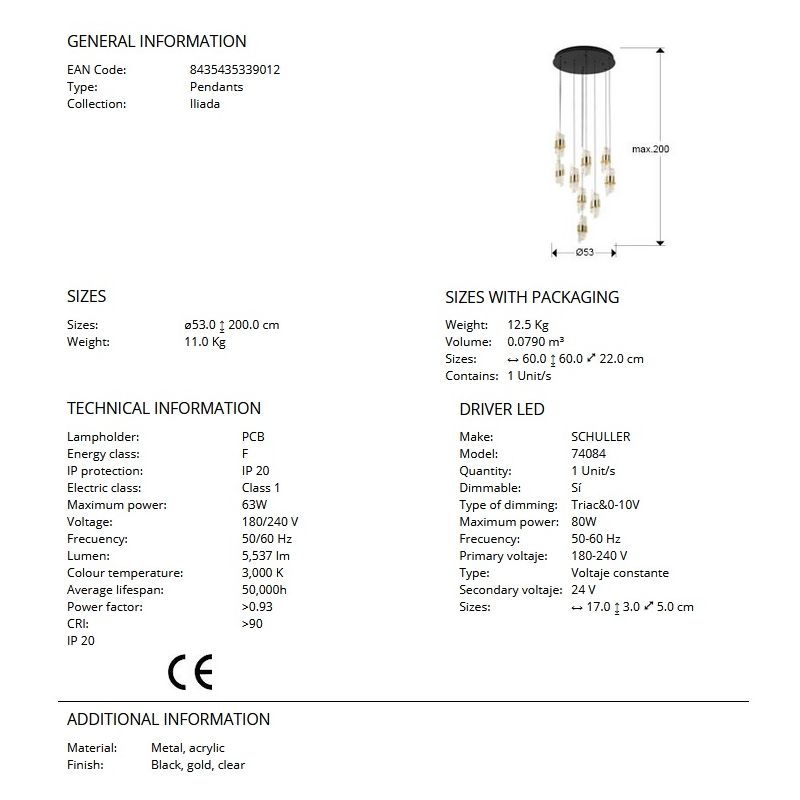 | Dimensiuni | diametru:53cm; inaltime suspensie:max.200cm |