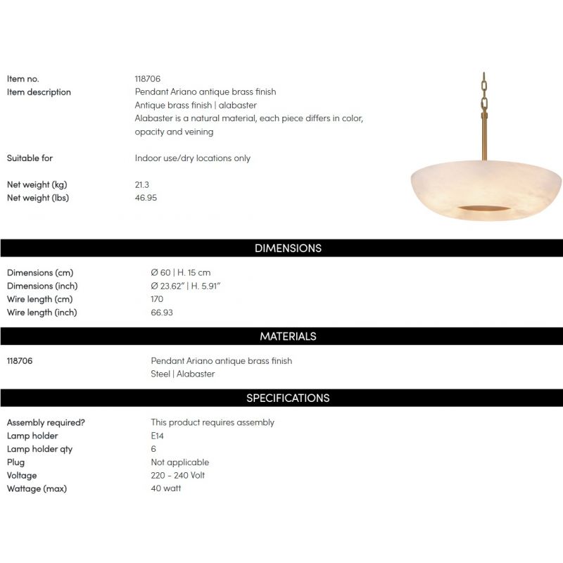 | Dimensiuni | diametru:60cm; inaltime:15cm + lant 150cm |