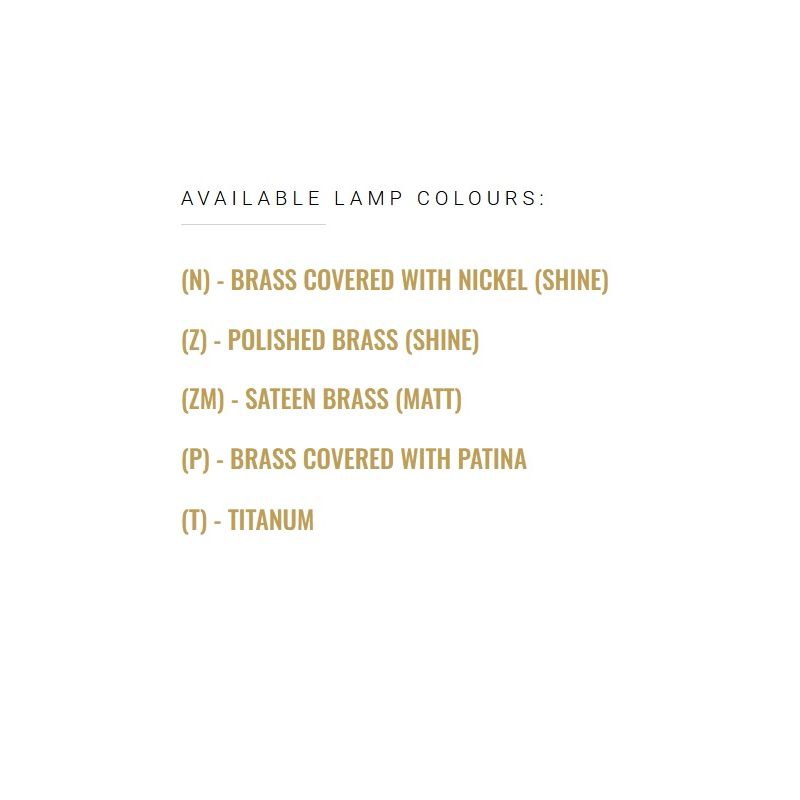 | Descriere | metal alama disponibil in 5 finisaje: alama patinata (P), alama finisaj nichel-lucios (N), alama satinata-auriu mat (ZM), alama polisata-auriu lucios (Z) sau (T) titan, sticla cu dungi verticale |