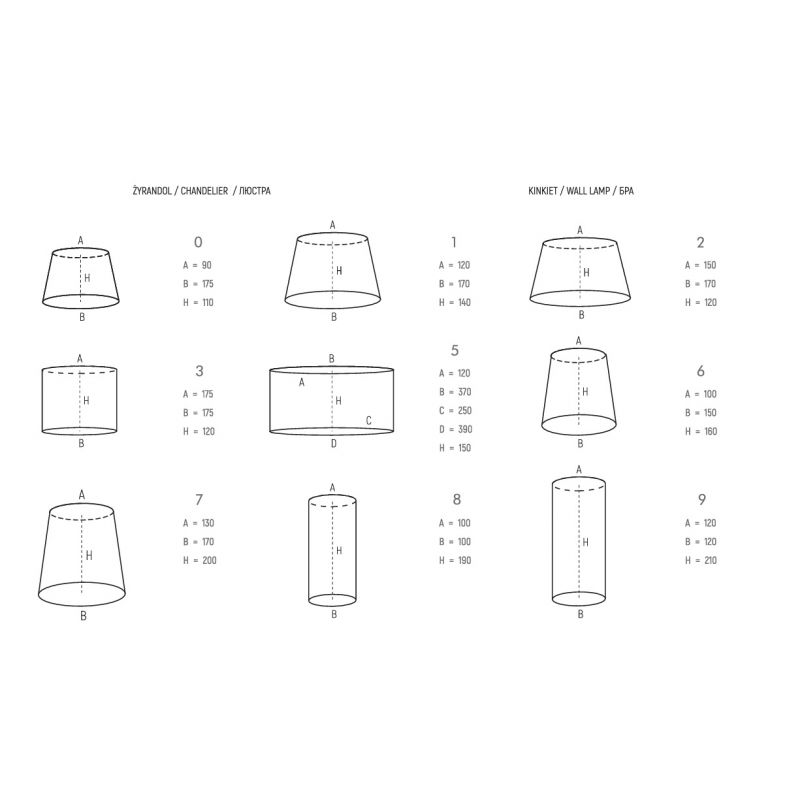 | Materiale | metal alama disponibil in 5 finisaje: alama patinata (P), alama finisaj nickel antic (N), nickel lucios (BN), alama polisata (Z) sau alama mata (ZM), abajur textil disponibil in diferite culori |