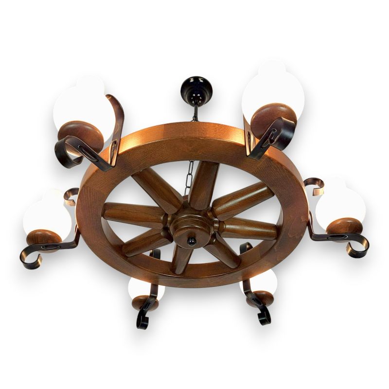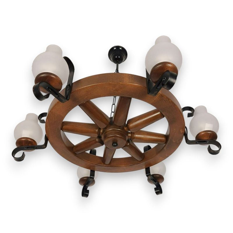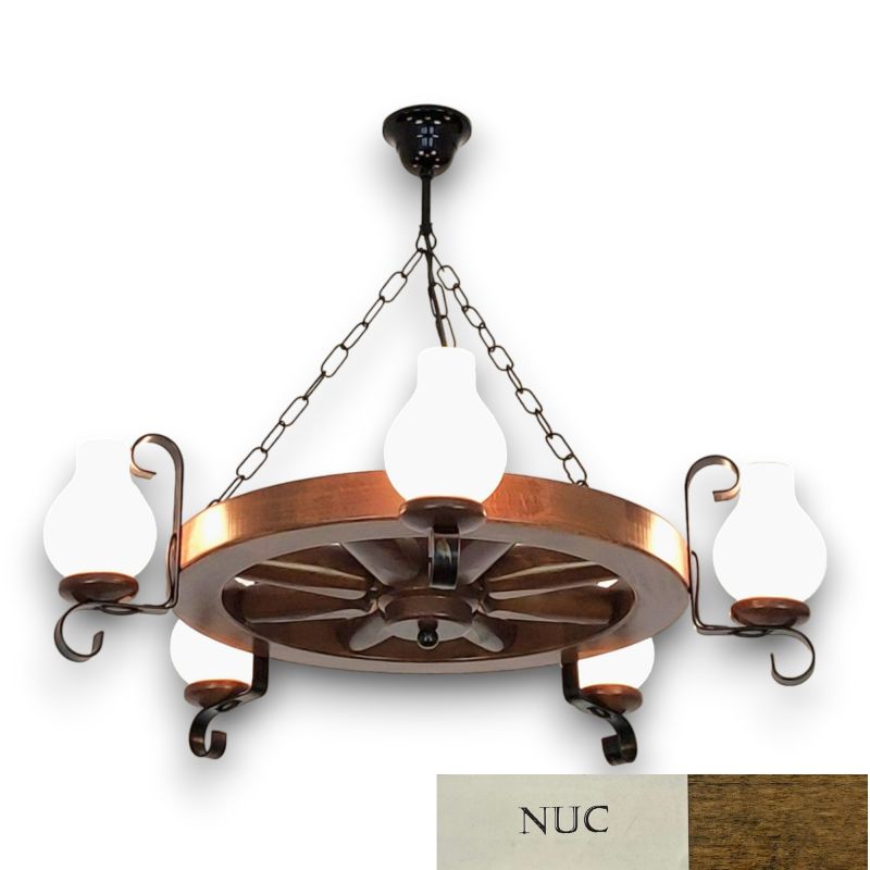 | Descriere | lemn de fag, fier forjat patinat si abajururi mate tip opait |