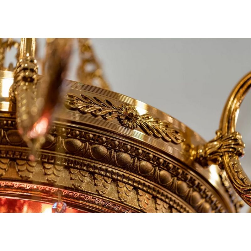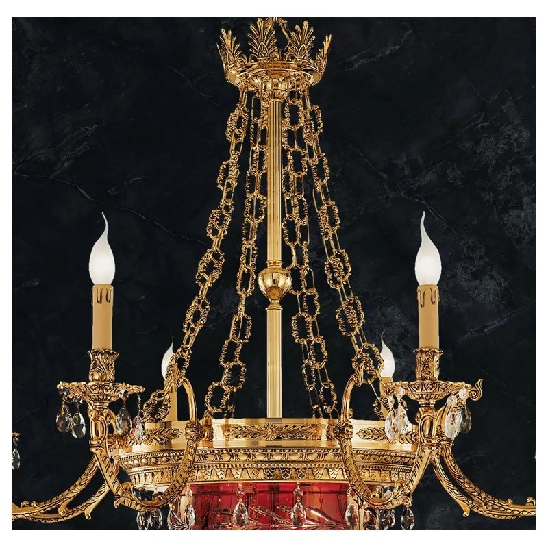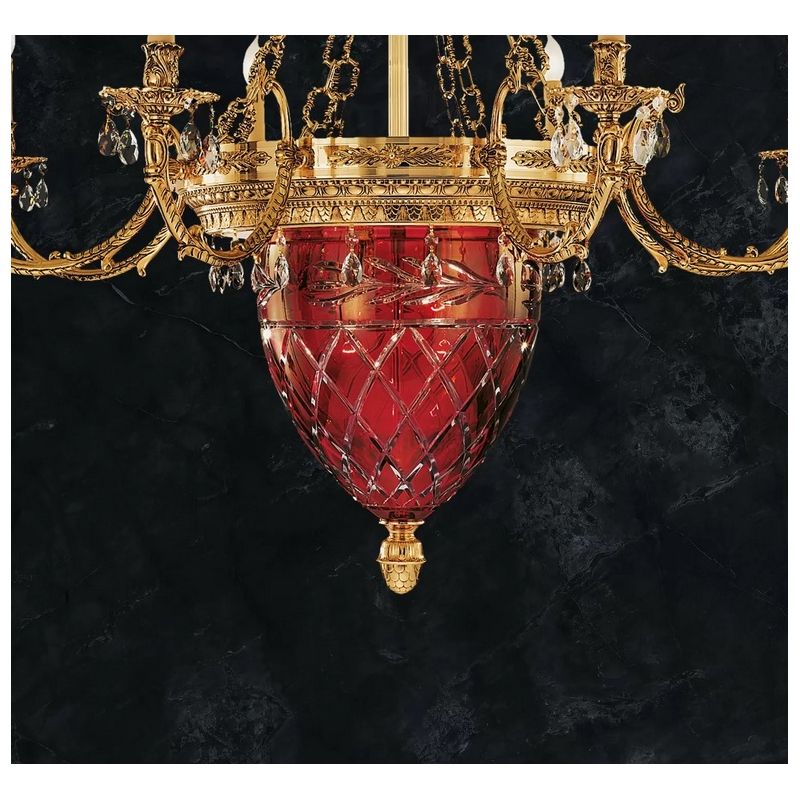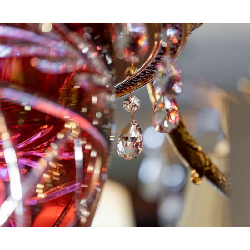 Materiale | realizata manual din alama turnata sub presiune, o arta straveche a mesterilor italieni, cristal rosu cu mici picaturi din cristal Scholer |