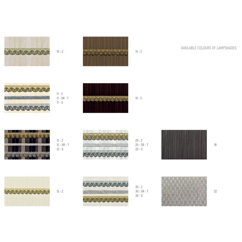 | Descriere | metal alama disponibil in 4 finisaje: alama patinata (P), alama finisaj nickel antic (N), auriu mat (ZM) sau alama polisata (Z), sticla, cristale, abajur textil |