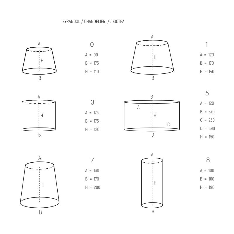 | Informatii produs: | Lustra realizata manual personalizabila (vezi poze secundare). Va rugam specificati finisajul metalului si codul abajurului in observatiile comenzii sau separat in mailul de confirmare pe care il veti primi de la unul din consultantii nostri. |